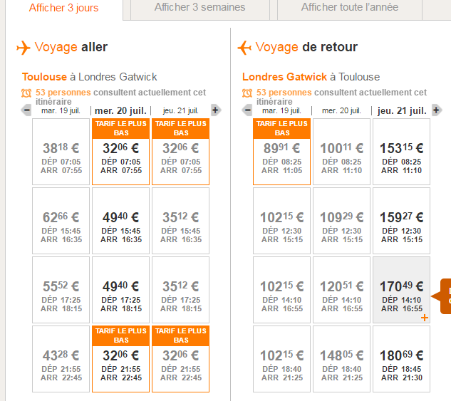 Voilà les vols et tarifs :